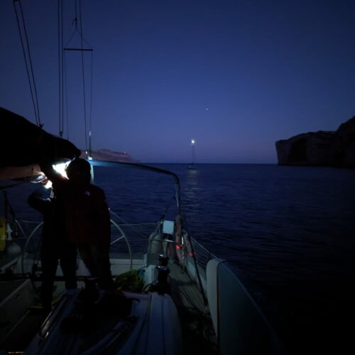 Une envie de large, ça s’accompagne : formation à la voile de ce couple jusqu’à une qualification de chef de bord, conseils sur l’achat d’un voilier, prise en main et premiers bords en famille… et on passe la main à Piero, qui accompagne le projet pour sa première transat. Le tout dans une vraie relation amicale et familiale !