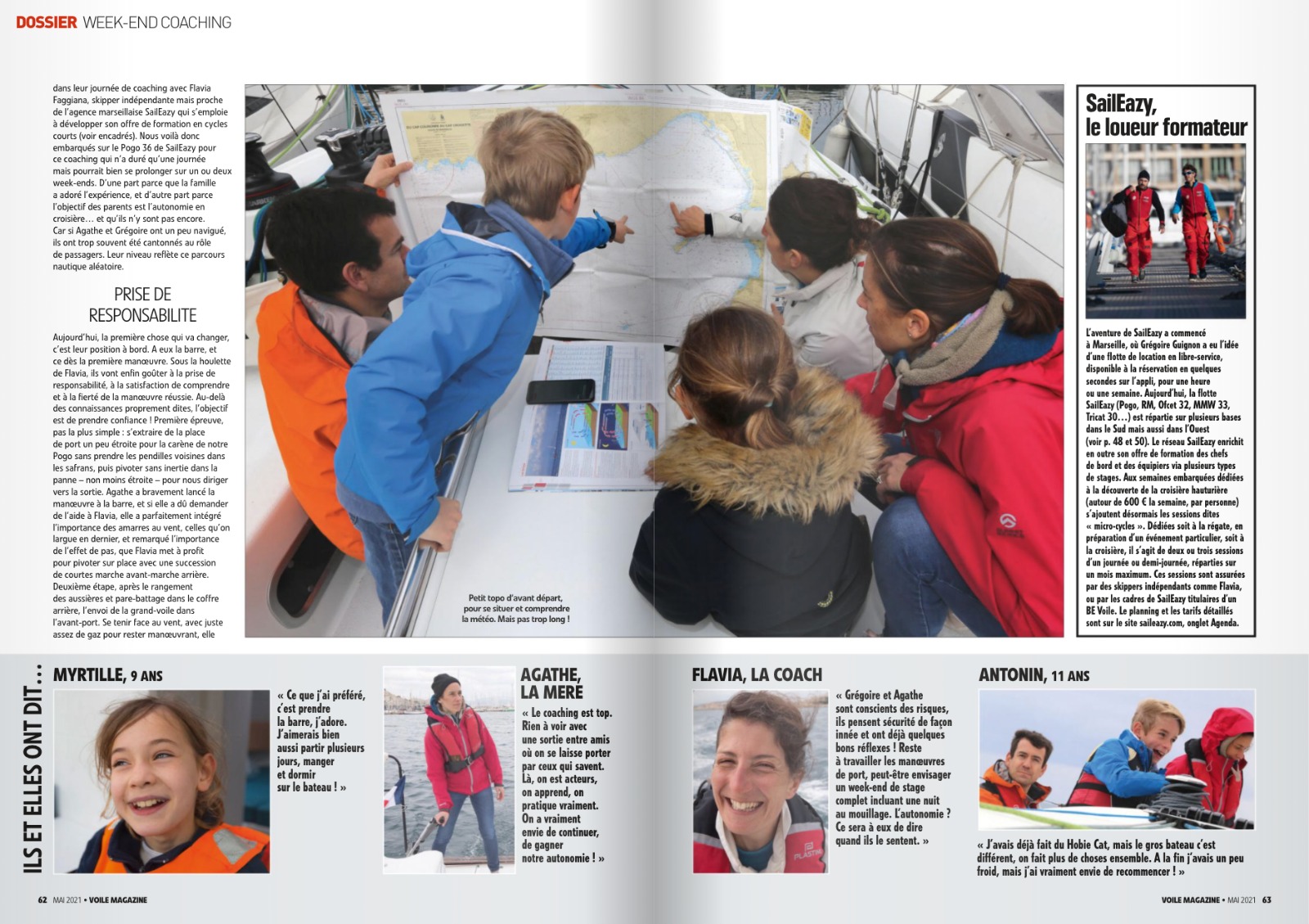 Une envie de large, ça s’accompagne : formation à la voile de ce couple jusqu’à une qualification de chef de bord, conseils sur l’achat d’un voilier, prise en main et premiers bords en famille… et on passe la main à Piero, qui accompagne le projet pour sa première transat. Le tout dans une vraie relation amicale et familiale !